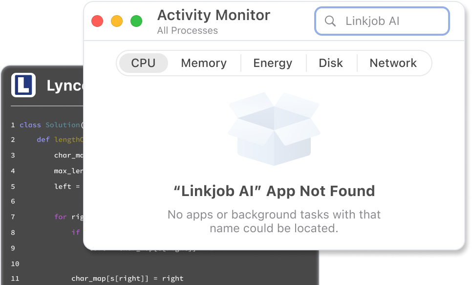 Linkjob AI Interview Helper is designed to operate discreetly during live interviews. It runs through the desktop app and does not interfere with video conferencing platforms, screen sharing, audio, or camera functionality.