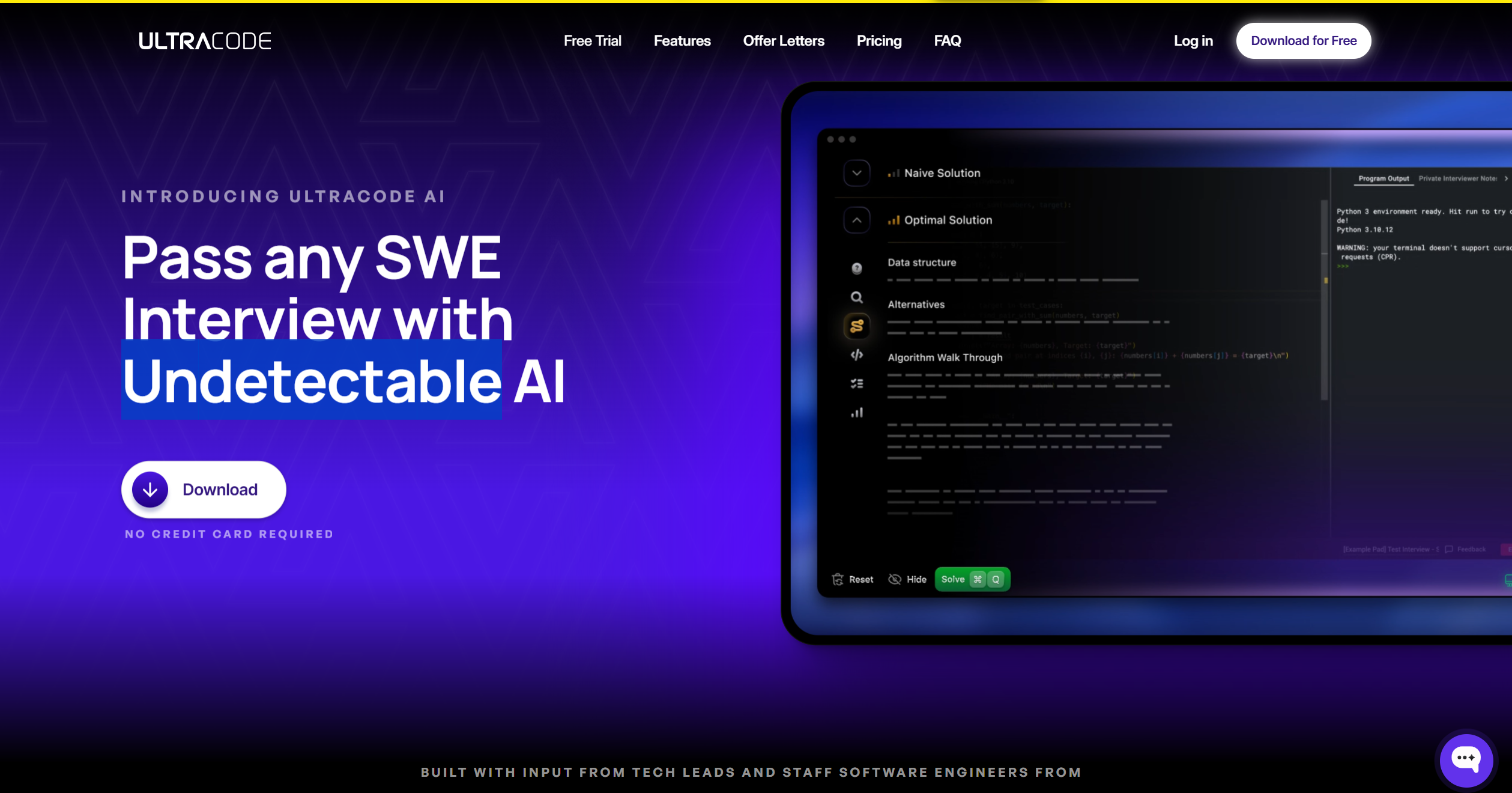 While using Ultracode AI to prepare for—and actually take—technical interviews, I kept running into the same issues, especially under pressure or in proctored environments: