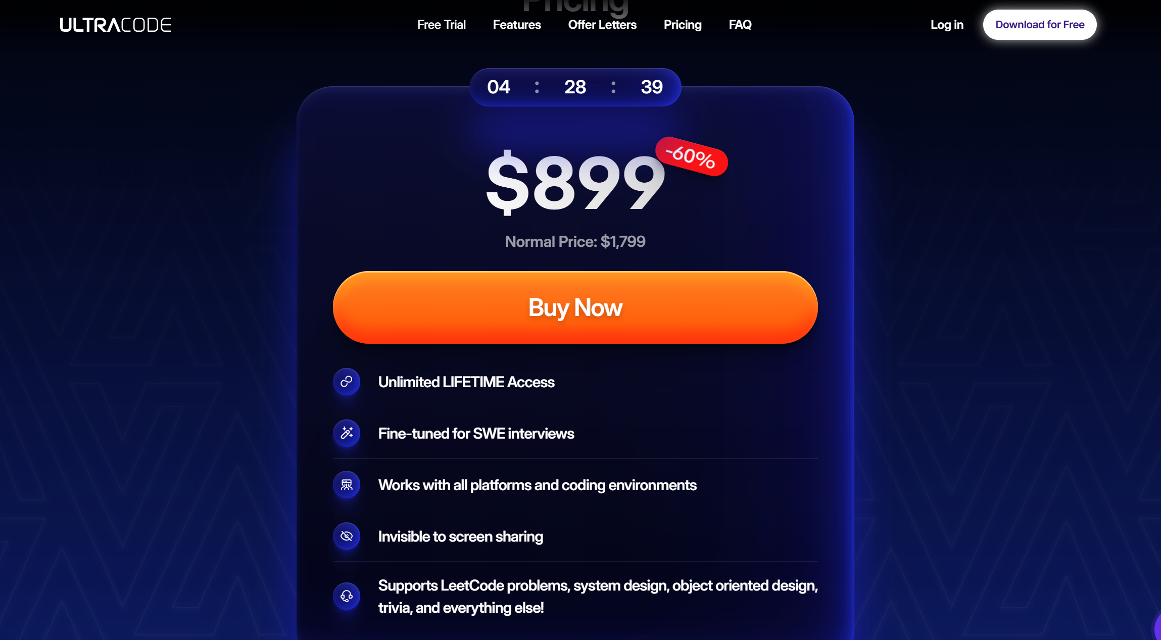 Ultracode AI has several solid features—it offers real-time suggestions, AI-powered responses, and works reliably across major coding platforms like HackerRank and CodeSignal. Its interface is straightforward, and the Proprietary ThoughtFlow Technology does help structure answers in a logical way.