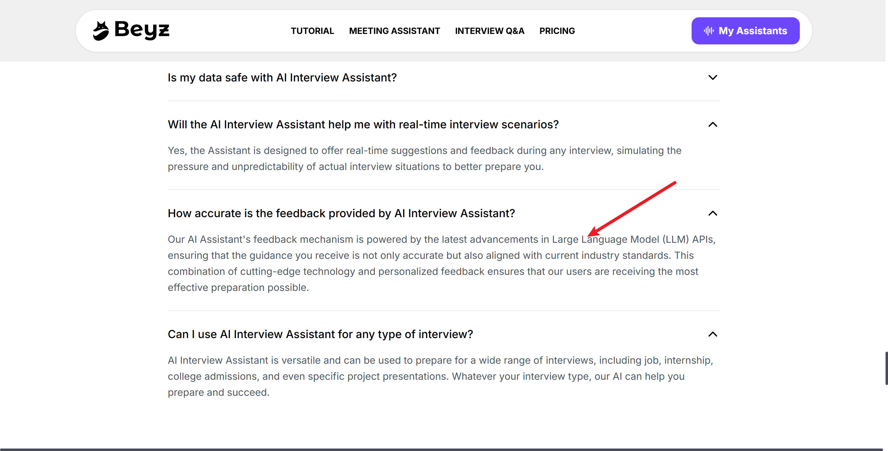 Secondly, I tried to research the AI model used by Beyz AI, but I couldn't find any official documentation. They only say they use the latest LLM model. If a paid service only has an unknown model, I'd rather use an AI interview assistant that has clearly specified, high-quality models, like the ones that Linkjob AI provides.
