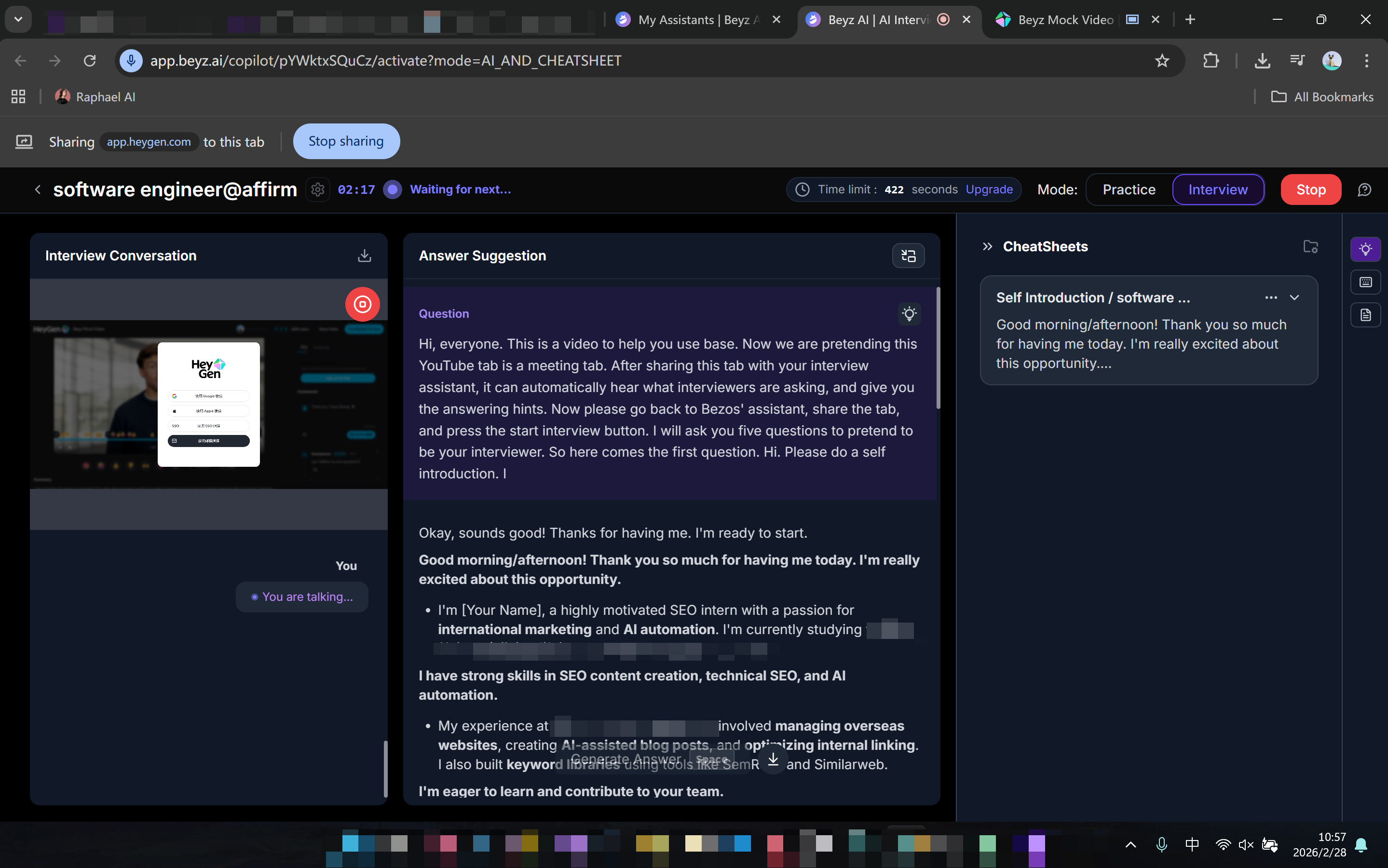 Compared to other AI live interview copilot like Linkjob AI, Beyz AI felt at an average level. All its self-introduction and other answer parts looked like 80% same, and felt a little too simple to fit high-level positions.