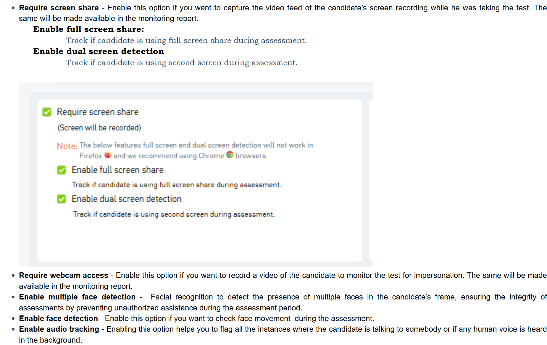 Screen Sharing and Recording: Candidates have to share their desktop so we can record everything that happens on the screen.