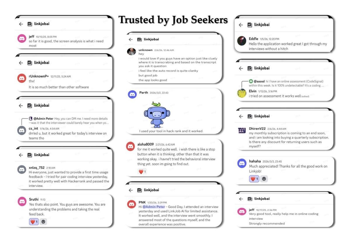 Definitely. Linkjob AI works on pretty much all online testing and meeting platforms, and it’s completely undetectable. For instance, you can use it on meeting apps like Zoom, Microsoft Teams, Google Meet, and Amazon Chime. It also works on interview platforms like HackerRank, CoderPad, HireVue, and Codility.