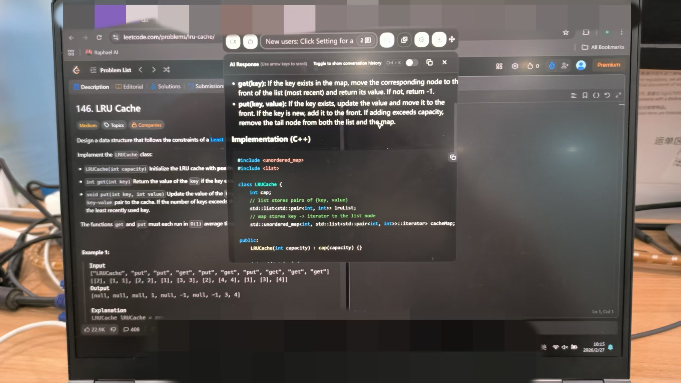 And one more thing: After I used the hotkey, the Interview Solver interface didn't appear or overlay on top of the LeetCode tab. Also, the Interview Solver interface took up too much space, meaning I couldn't see it while I was typing the code.