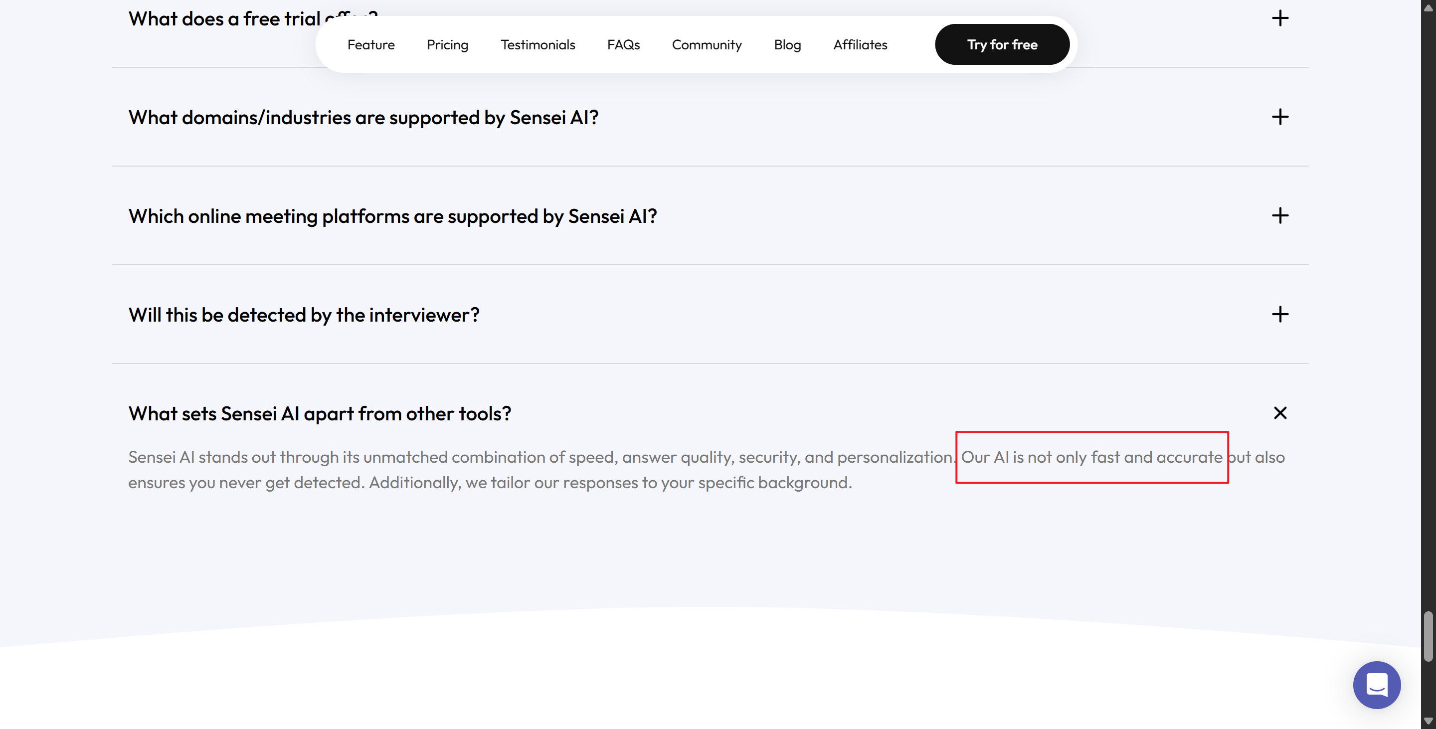Sensei AI, on the other hand, shines during mock interviews but can fall short in real scenarios because its extension is visible when sharing your screen.