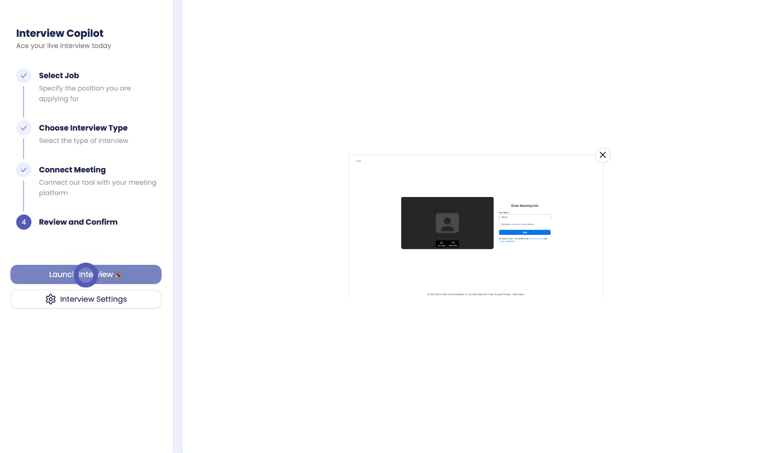 Linkjob AI operates seamlessly within popular video conferencing platforms like Zoom and Microsoft Teams. It provides context-aware suggestions that match my resume and the specific job I am applying for if I add proper prompts.