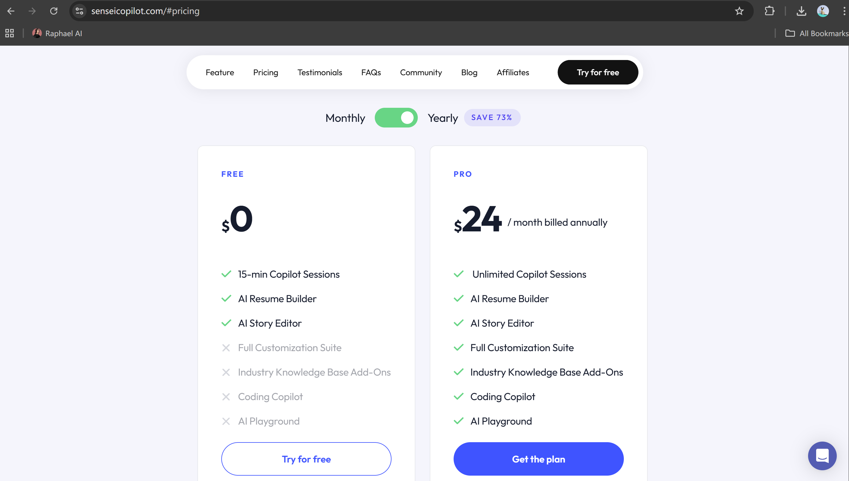 If I wanted more advanced features, I saw that Sensei AI’s premium plan costs $24/month if billed annually ($89 for monthly). The free plan covers basic needs, but the premium price made me think twice (after all, Sensei AI can be detected in real interviews). I wanted to know if the value matched the cost.