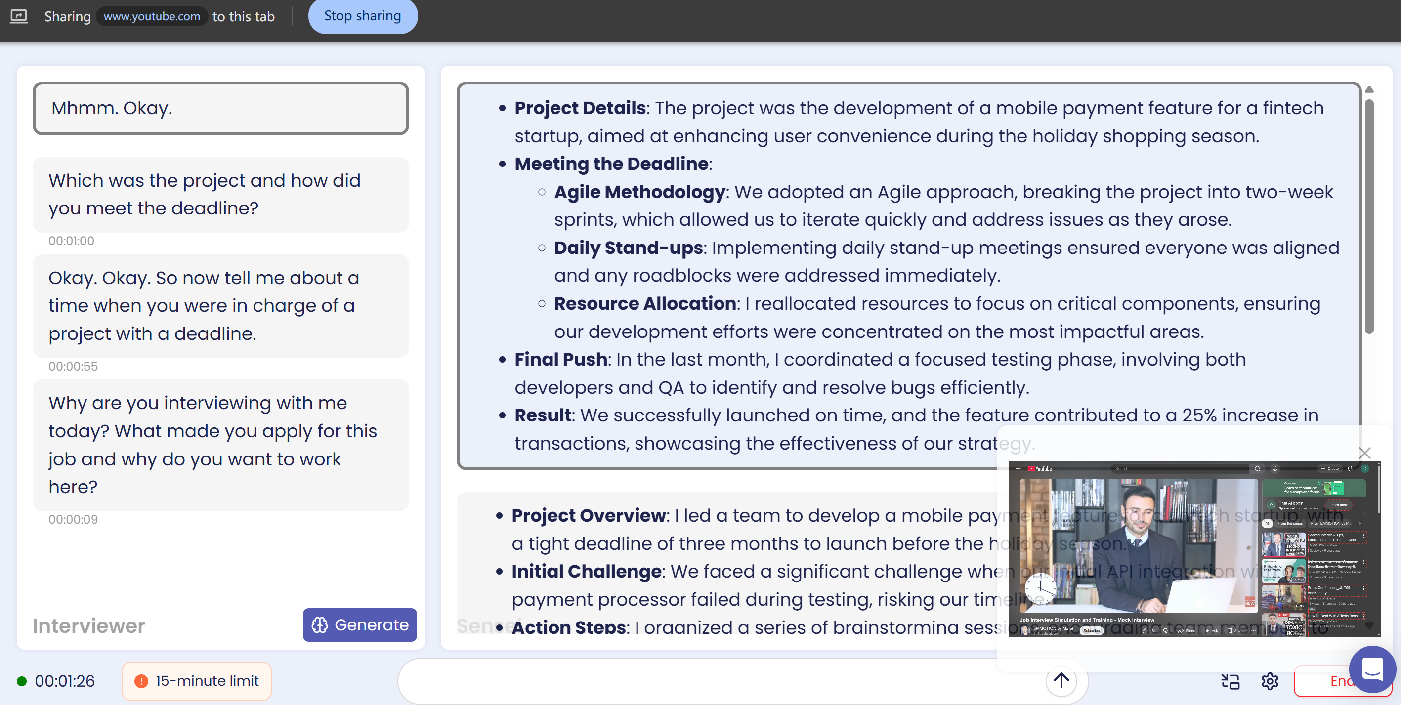 When I started using Sensei AI for interview prep, I noticed how its AI Copilot system gave me almost instant replies after transcribing questions from the video.