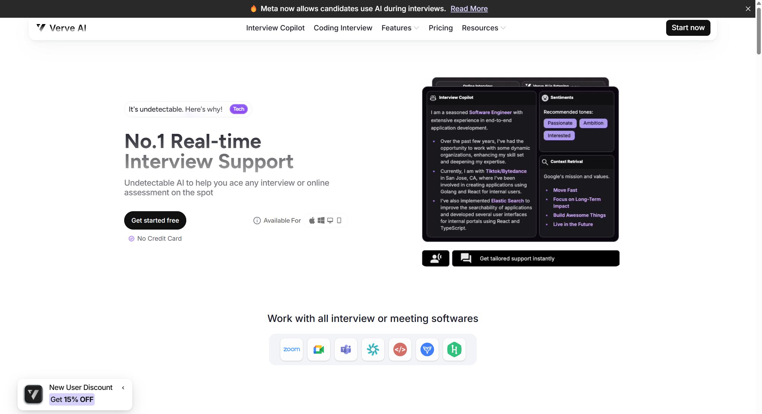 Verve AI packs a punch with its AI-powered features. I noticed right away that it offers a Real-time Interview Copilot. This feature provides live transcription and suggests context-aware responses while you answer questions—like having a smart assistant by your side. I also tried the Specialized Copilots, which switch between behavioral and coding interviews to give targeted support for each format.