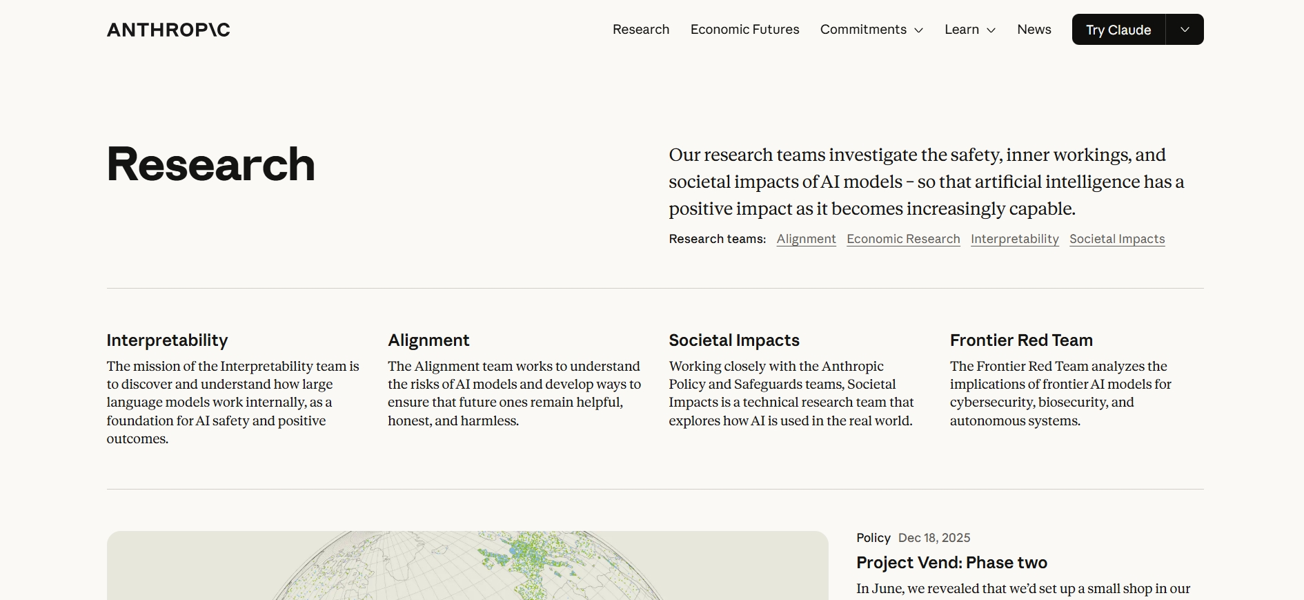 Anthropic’s research is divided into nine main categories, with the bulk of the blog content focusing on four key areas: Alignment, Interpretability, Societal Impacts, and Policy.