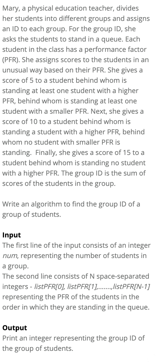 If listPFR[i] < max_back and listPFR[i] <= min_back (i.e., there’s no smaller PFR behind), award 10 points.