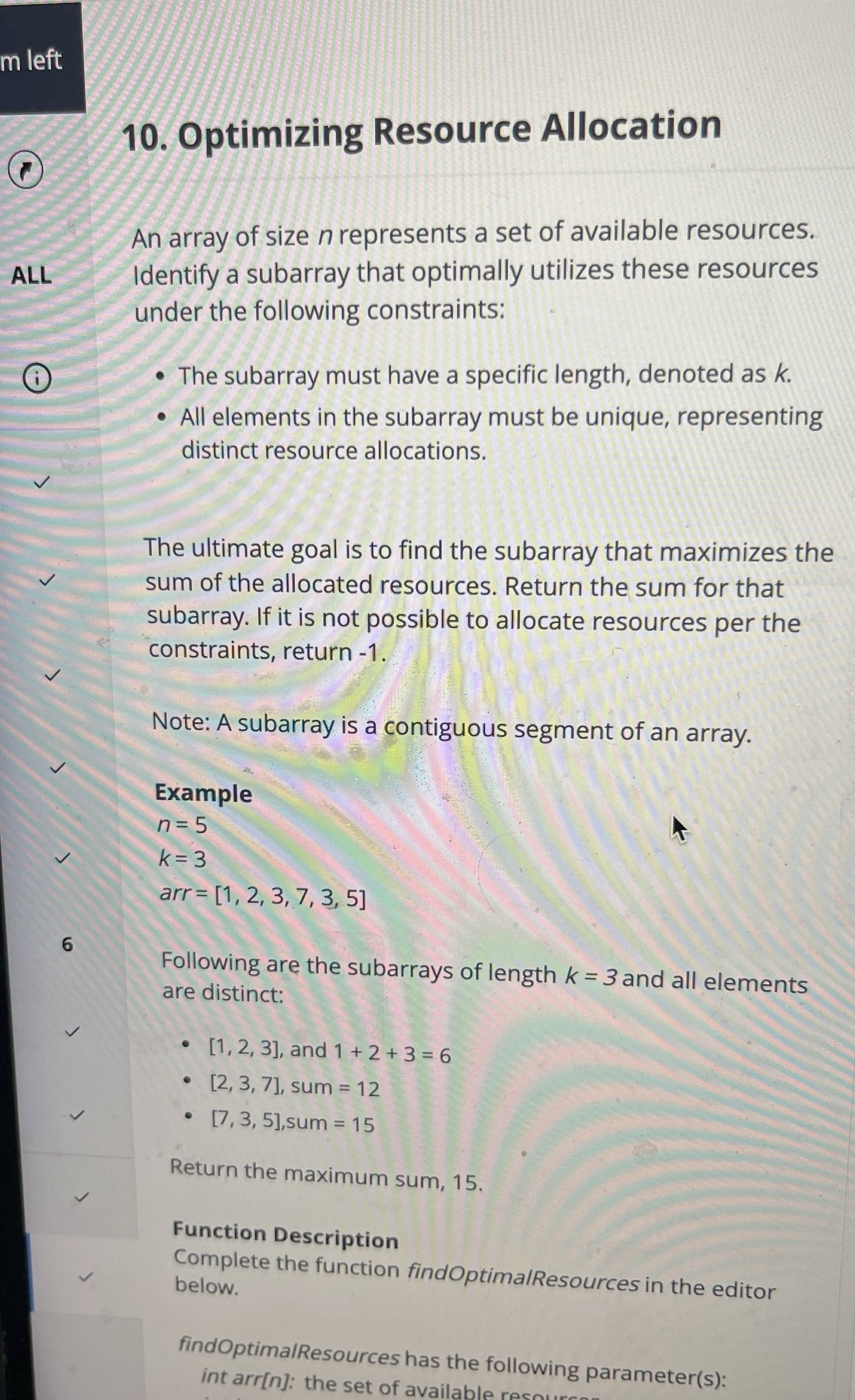 The Critical Constraint: Every element within that subarray of length k must be unique (distinct resource allocations).