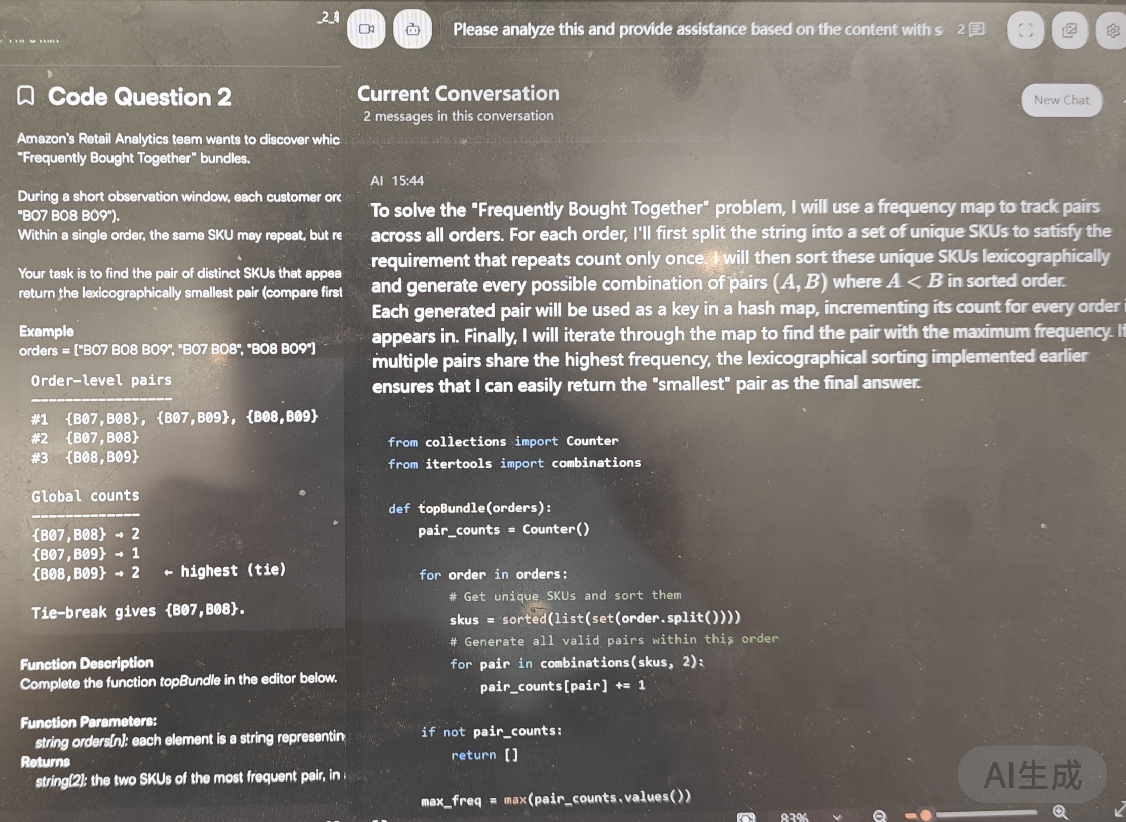 I set up AI prompts in advance. This saves me a lot of time because during the actual interview, I don’t have to waste time telling the AI what to do with the images. For example, my prompt is: “Here’s my programming question; please provide the solution logic and complete code answer.”