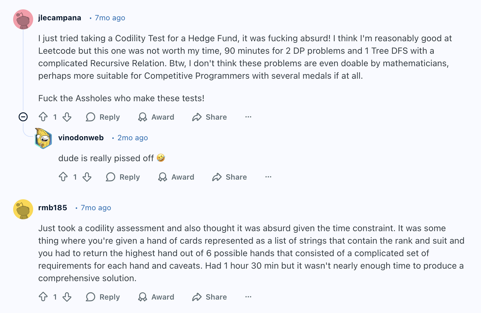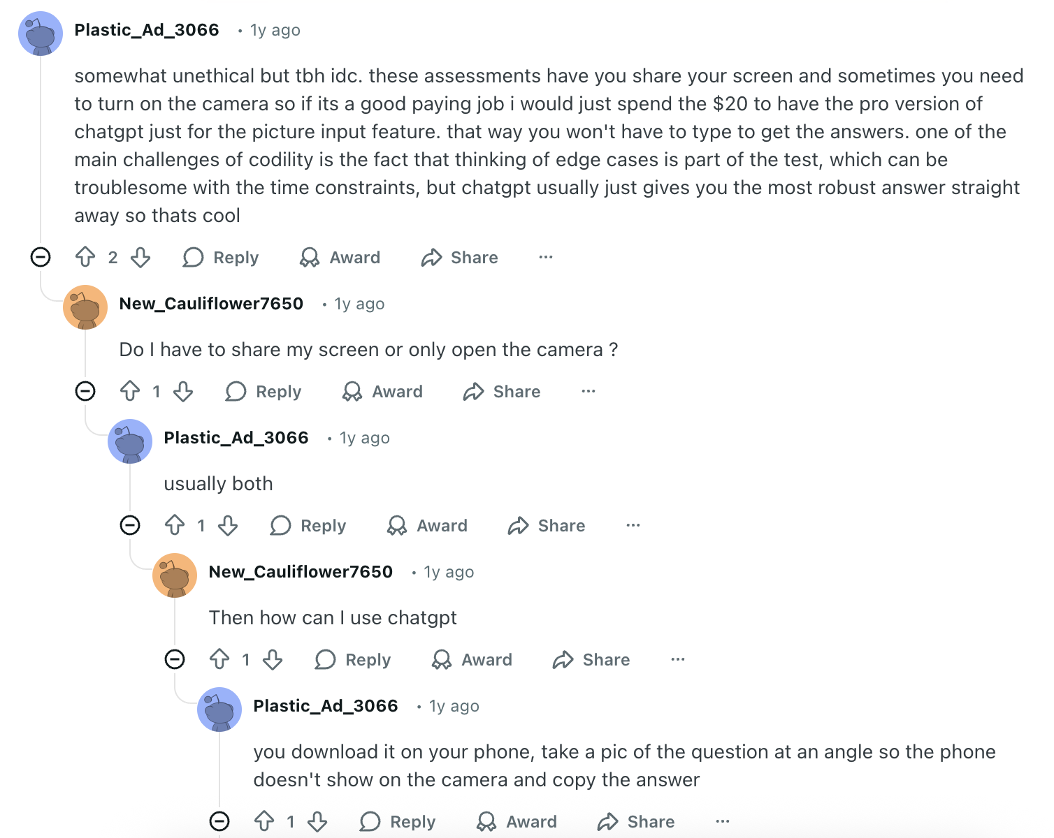 I’ve also gathered some discussions and comments from Reddit users about ways to bypass the Codility OA. I found that the Reddit discussions on this topic weren't as active as I’d expected. Plus, most of the threads are pretty old, so the methods they’re talking about are still very primitive.