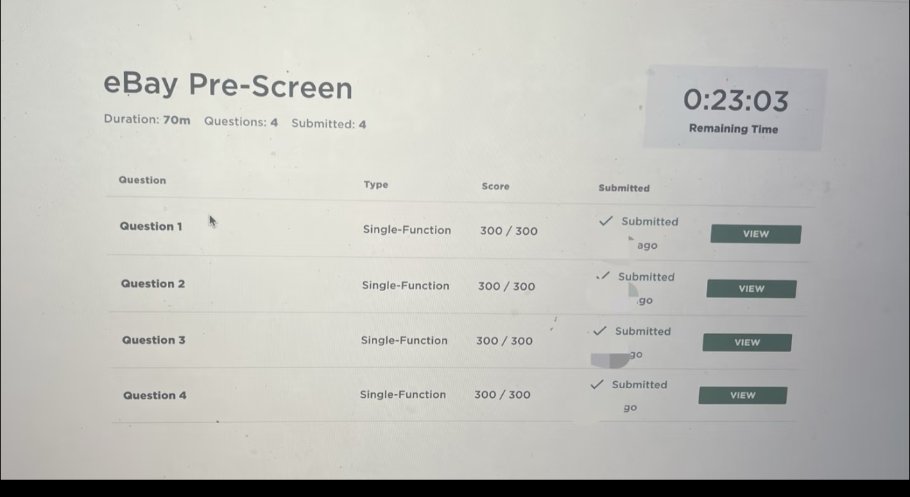 Unexpected challenges can pop up in any ebay interview. If I got stuck, I moved on to another question and came back later. This strategy worked well for both technical and ml assessment questions.
