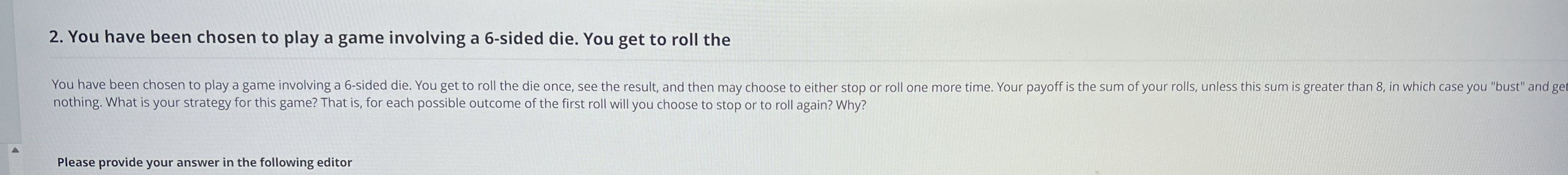 This problem is really an optimization question: for each initial roll x, decide whether “stop” or “roll again” gives a higher expected payoff.
