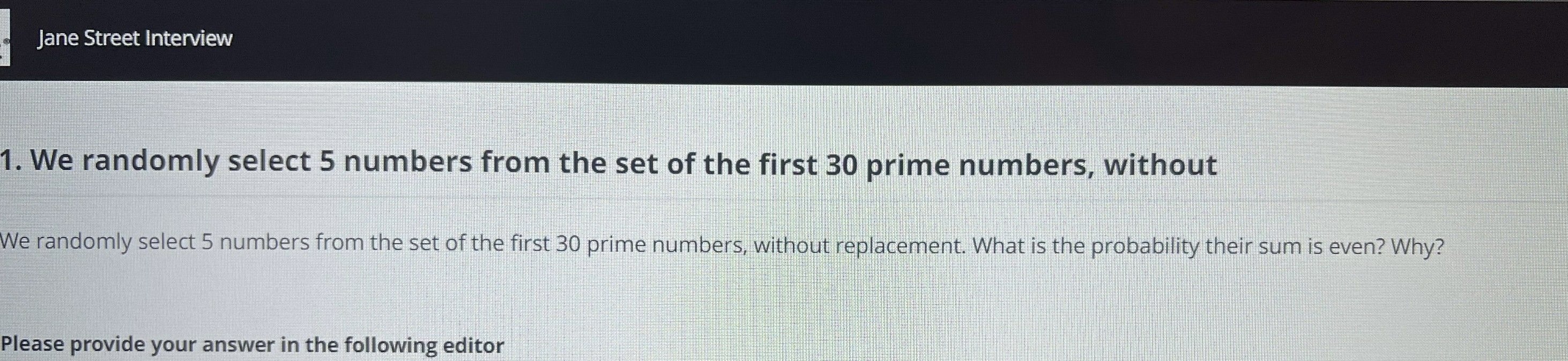 Mock the Online Assessment | I practiced with timed questions, focusing on probability, expectations, and combinatorics. |