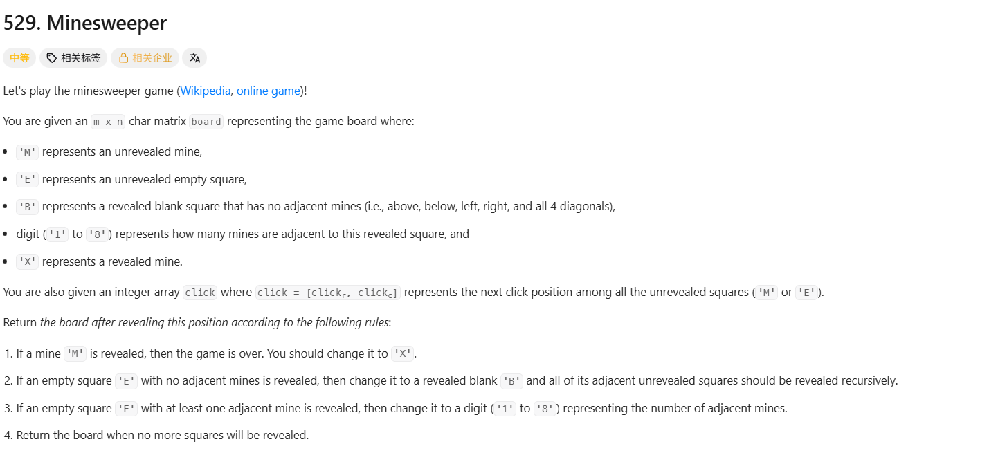 I recall encountering a Minesweeper-related problem during my interview, and it was very similar to a LeetCode question. The problem is as follows:
