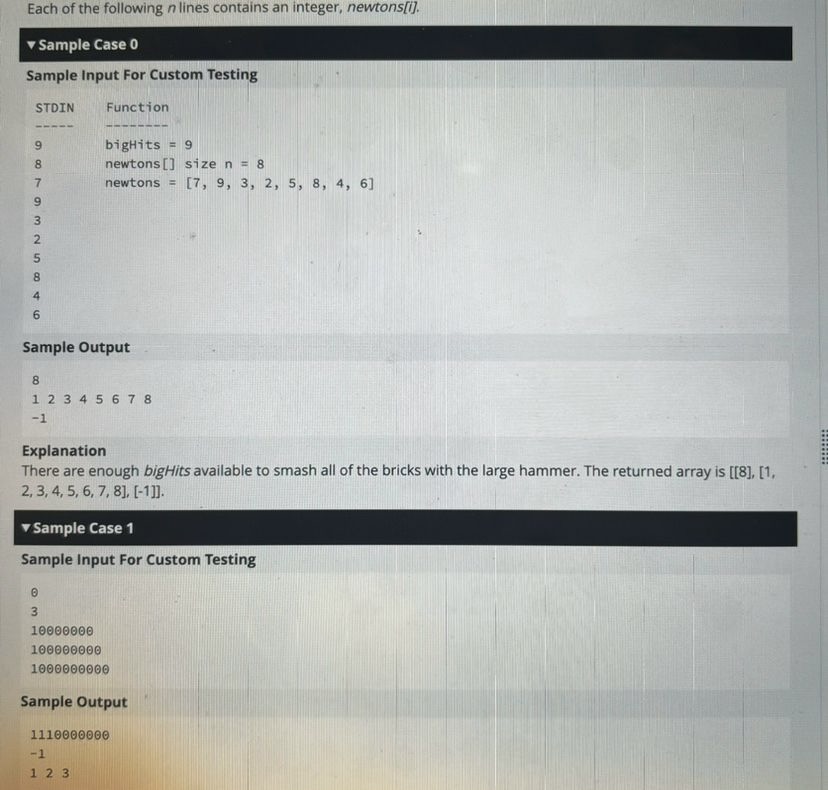 If bigHits = 0, all are hit with the small hammer → big-hammer indices = [-1].