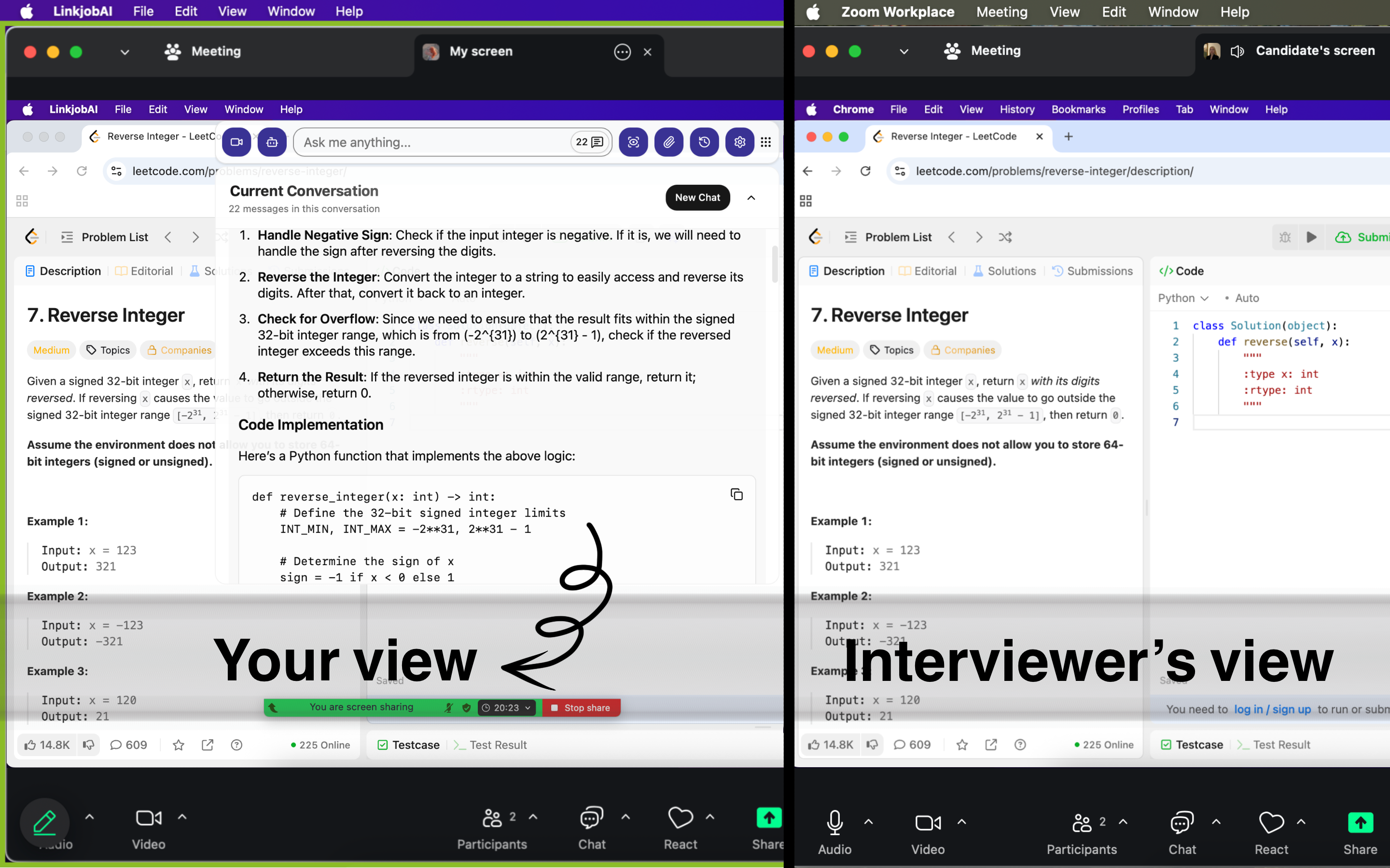 Although OpenAI has a coding problem bank, answering them and follow-up questions well can still be challenging. The good news is that Linkjob’s AI-generated answers are only visible to me, even when my screen is being shared. I tested it with a friend, and my experience using it during the interview was excellent.
