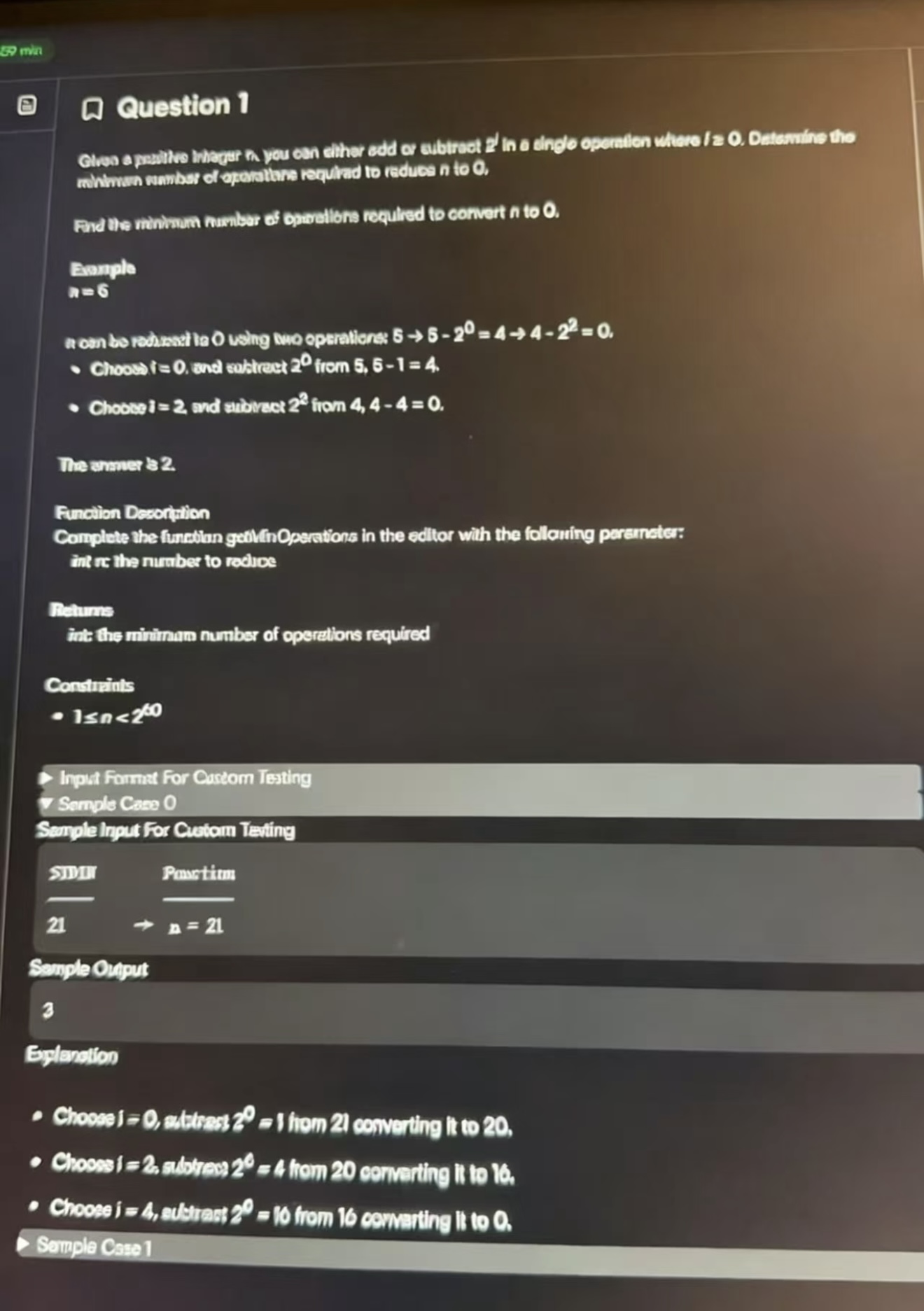 Problem 1: Easy to medium. The logic is fairly straightforward, and once the rules are clear, a greedy or simulation approach works (for example, operations related to binary representation). This mainly tests how well you understand the problem.